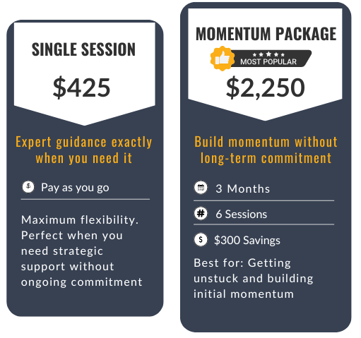 This 90-minute strategy session helps you pinpoint revenue leaks, understand what’s blocking progress, and get a clear plan you can act on immediately. It’s a low-pressure, high-impact way to reset your direction and move forward with confidence.
